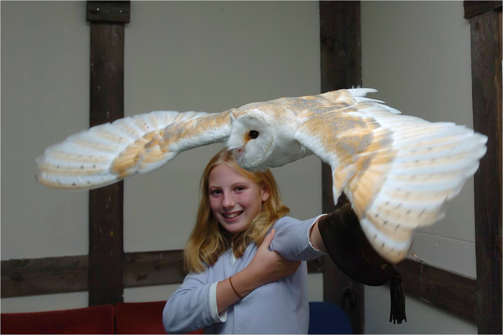 For those who had the pleasure of meeting Gyzmo, whether you flew him to the gloved hand, met him on a photography day or even encountered him during a school visit, group visit or Barn Owl Birthday Party, people of all ages & backgrounds always felt honoured by his presence. Gyzmo's favourite people of all were children or people who had personal problems of their own, the happier they become the more he loved their company, he simply loved creating an atmosphere where people would feel valued! At 4pm he would always be waiting eagerly at the front of his aviary because he knew this was his time when visitors including children would be arriving to meet him on a Flying Experience, this is where he enjoyed showing off his silent flight skills over peoples heads & to the gloved hand worn by his guests. What a show off he was!